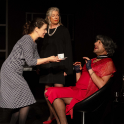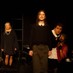 Neben der Krimispannung überzeugte das Stück auch durch seinen schwarzen Humor und die trickreiche Konstruktion. Die neun Figuren waren klar und konturiert gezeichnet – mal zynisch, mal verletzlich, mal überdreht, mal beherrscht – und sorgten für eine dichte, lebendige Atmosphäre. Gerade im Zusammenspiel entfaltete sich ein psychologisches Kammerspiel, das die Zuschauer gleichermaßen zum Lachen wie zum Nachdenken brachte.